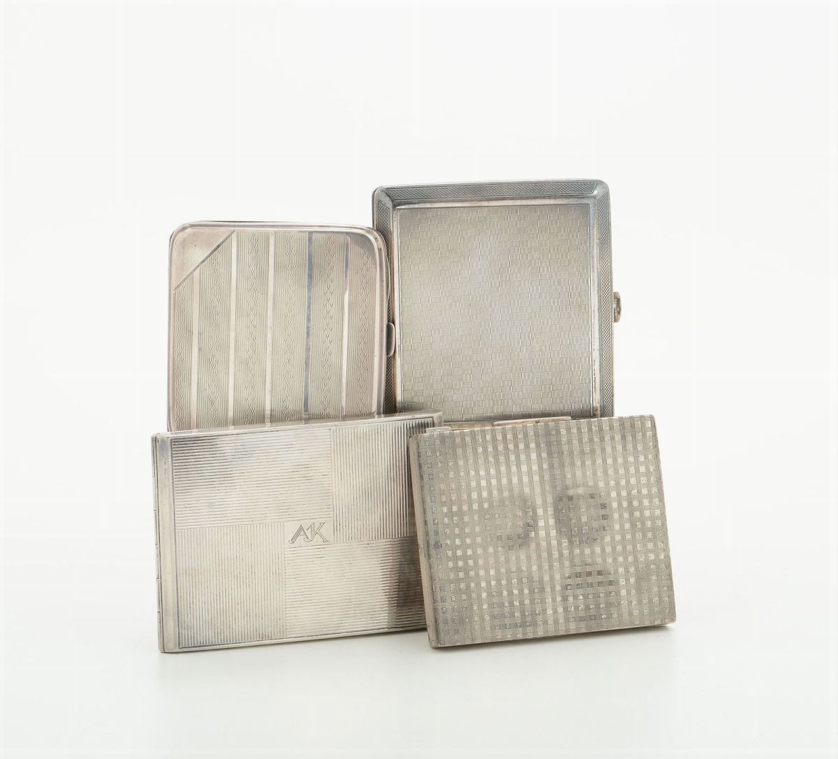 Quattro portasigarette in argento, varie manifatture ed epoche