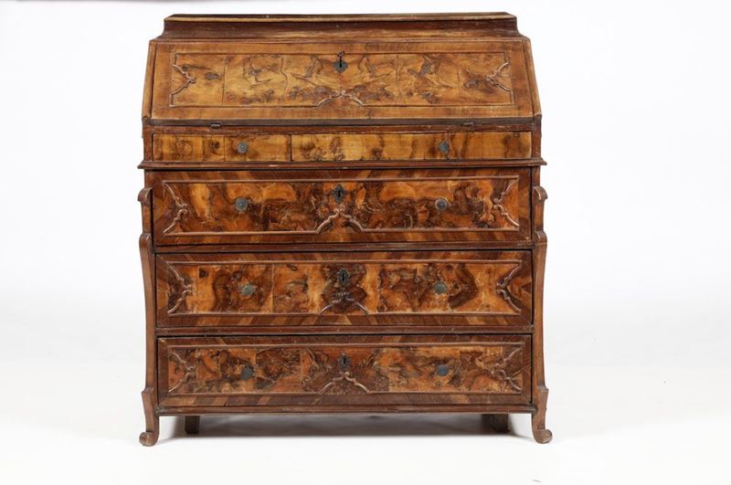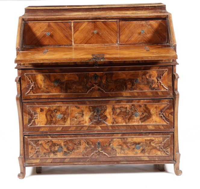 Ribalta a tre cassetti, XVIII-XIX secolo (lastronatura di epoca successiva)