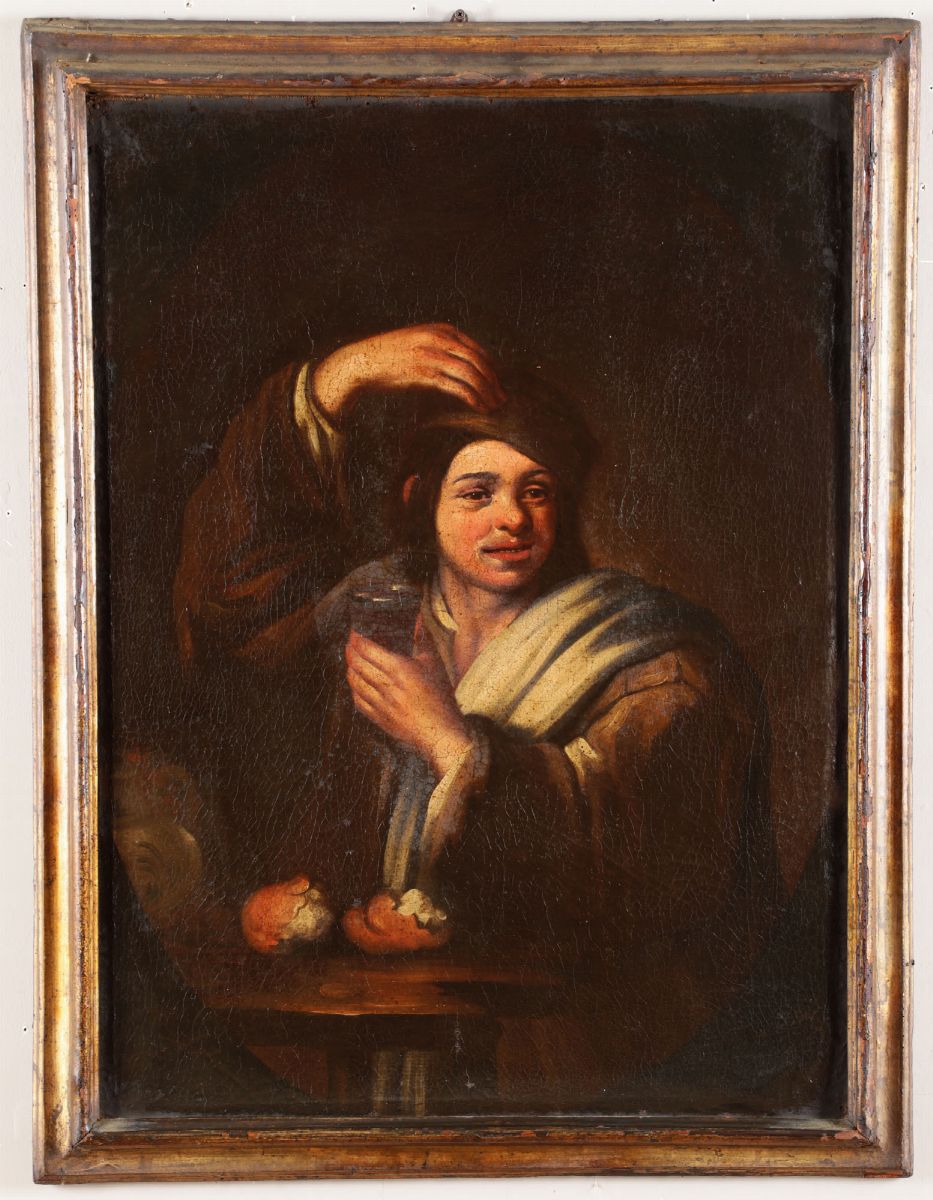 Scuola del XVIII secolo Figura di giovane con funghi