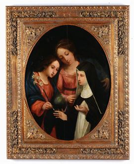 Scuola Italiana del XVII secolo Santa Chiara con Cristo e la Vergine