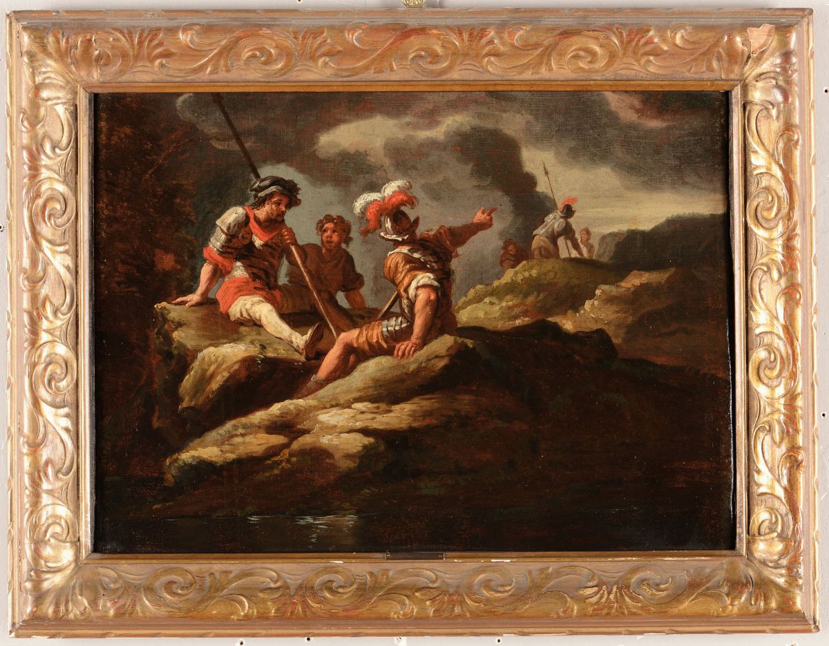 Scuola Italiana del XVIII secolo Paesaggio con soldati