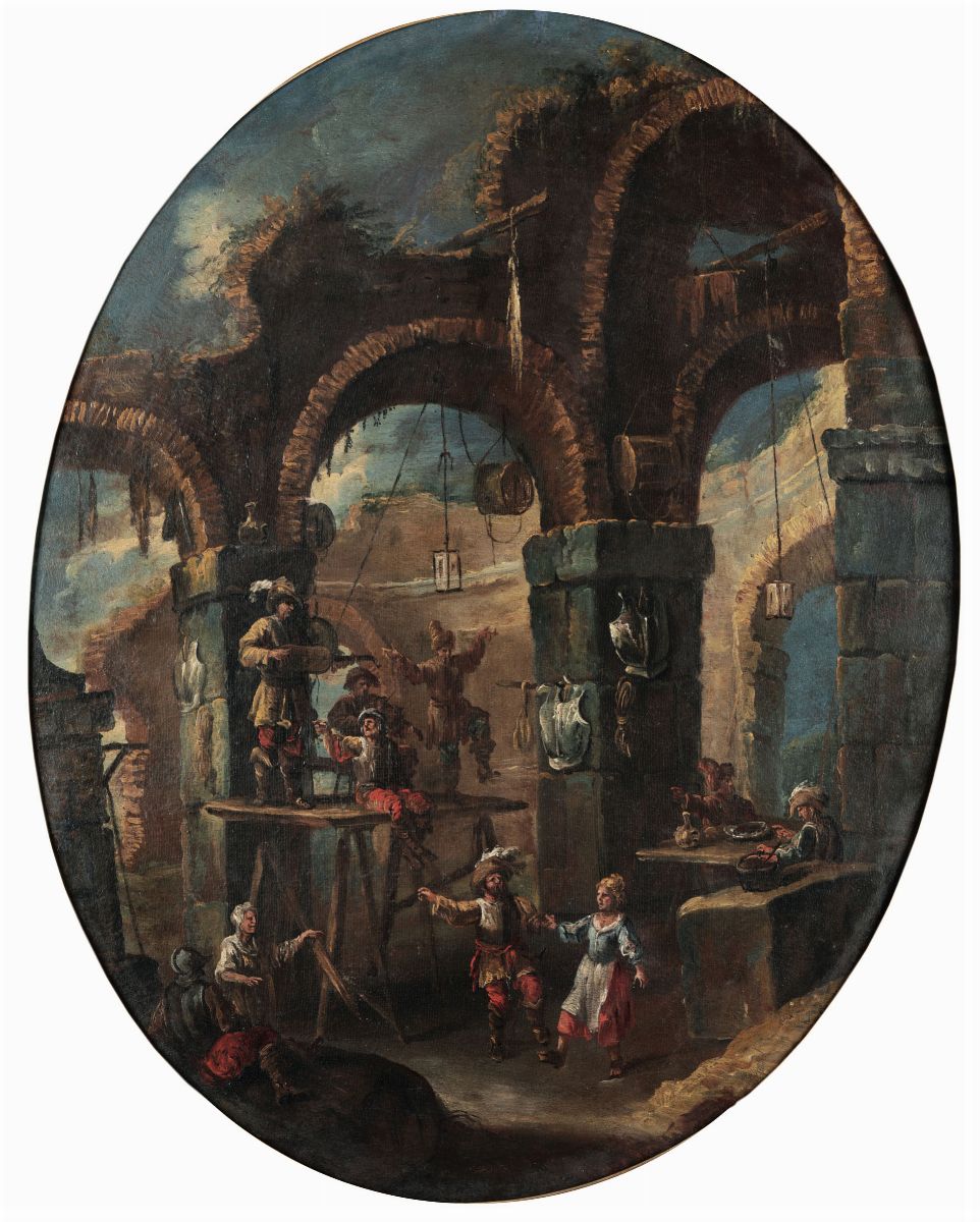 Scuola veneta del XVIII secolo Rovine con personaggi