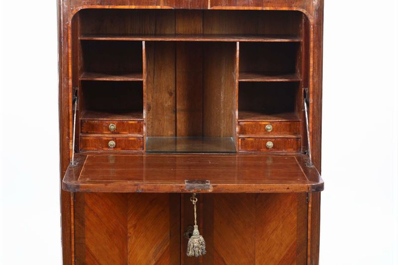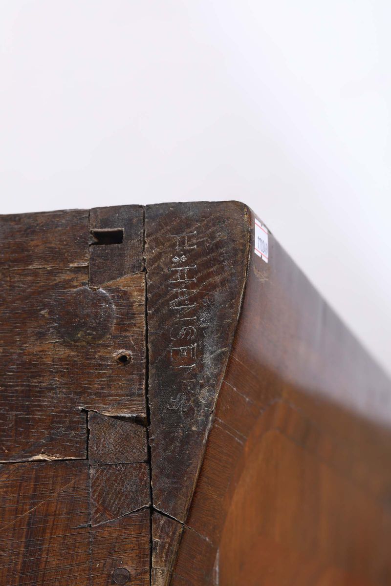 Secretaire interamente lastronato in noce e filettato, stampigliato H. Hansen..., XIX secolo