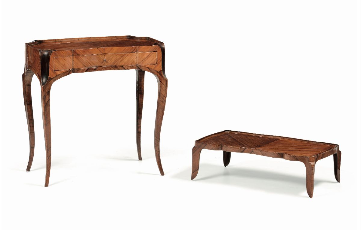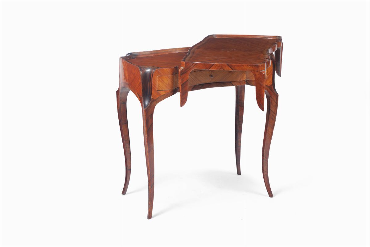 Table d’accoucheé intarsiato in bois de rose, Francia, fine XVIII secolo