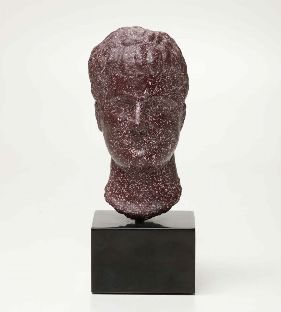 Testa maschile in porfido su base in marmo, XIX-XX secolo