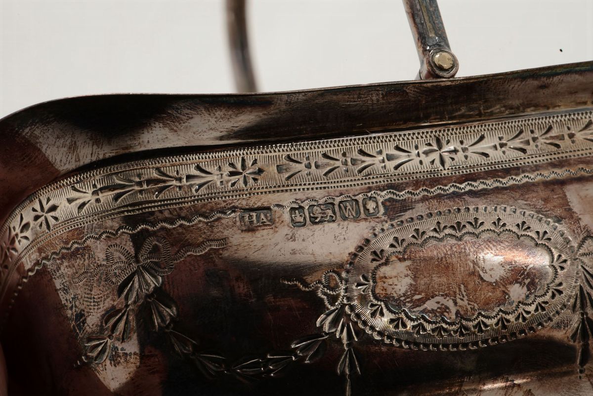 Vaschetta in argento con manico in argento, Sheffield 1889, orafo Atkin Brothers