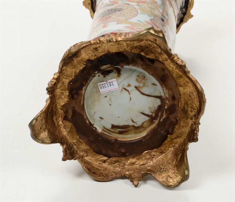 Vaso cilindrico in porcellana Imari a decoro naturalistico, Giappone, XIX-XX secolo