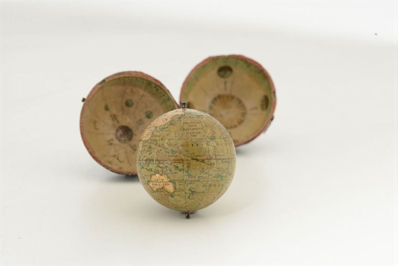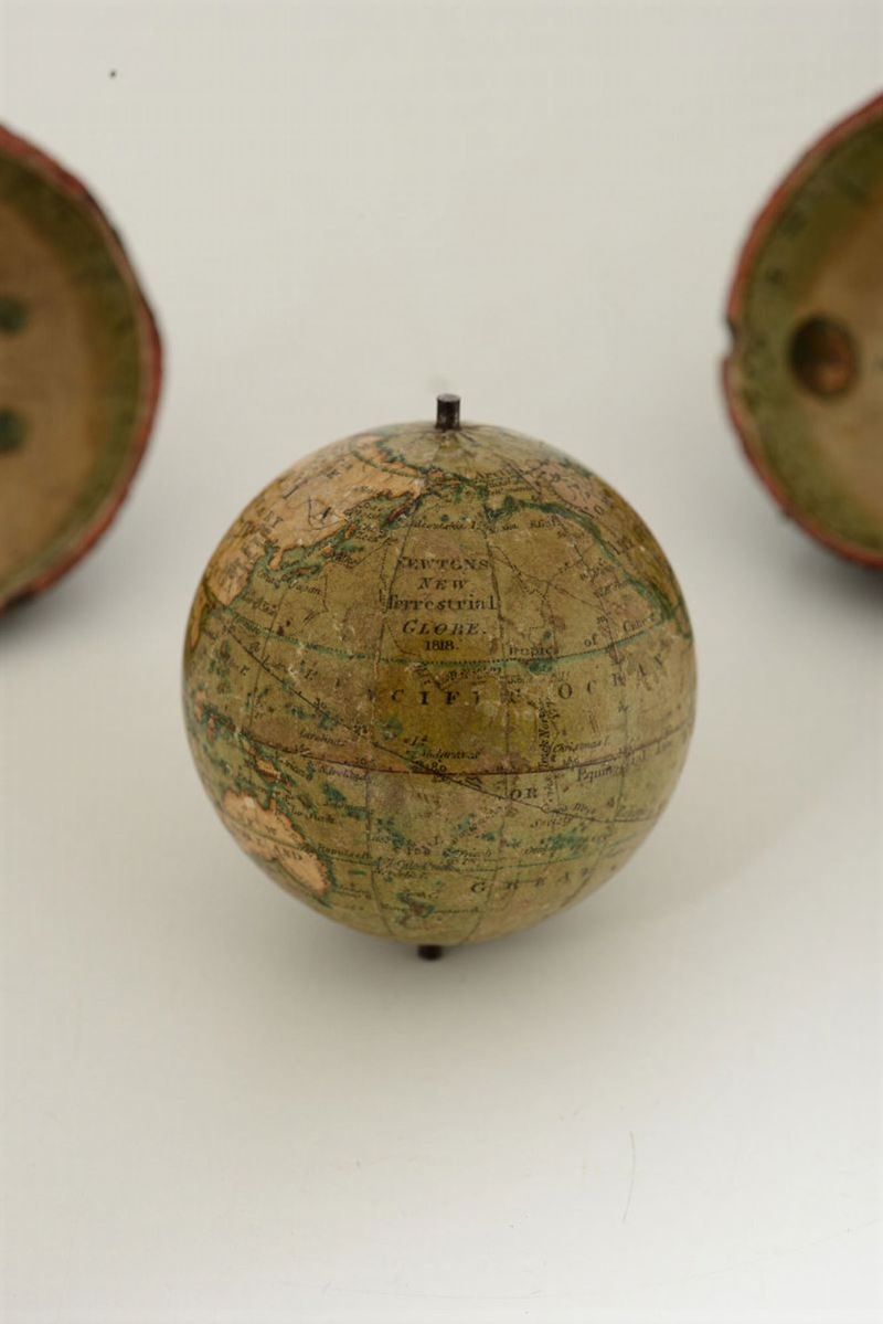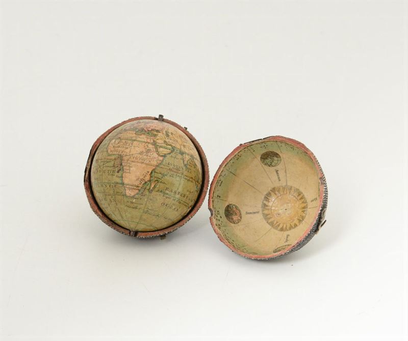 Piccolo globo terrestre da tasca, in custodia, Newton & Son, Inghilterra 1818