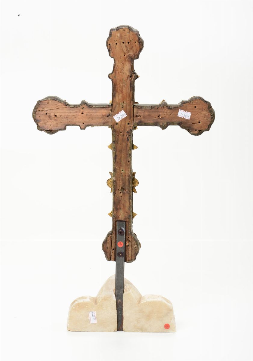 Antica croce astile in rame e bronzo dorato, XVI secolo
