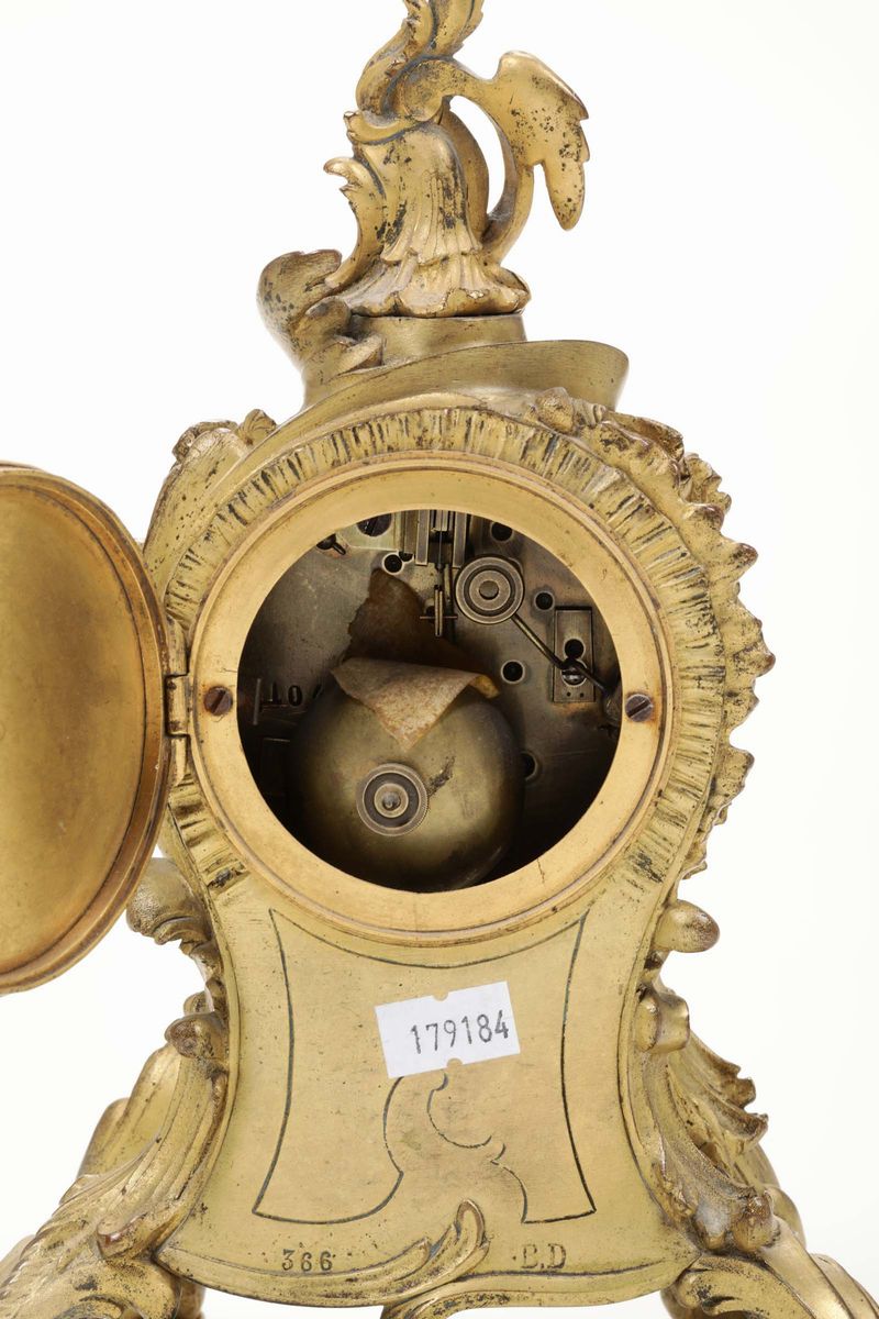 Pendola da tavolo in bronzo dorato. Francia, stile Luigi XV, XIX secolo