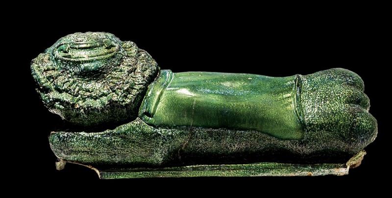 Loss of glaze, two corners of lion's basement missing.
