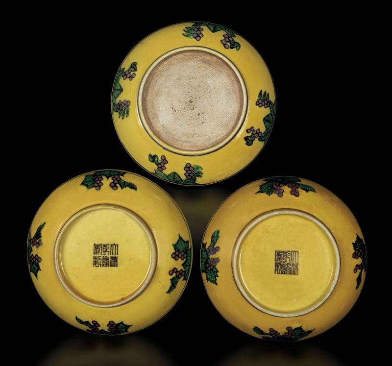 3 Sancai plates, China, Qing Dynasty, 1800s