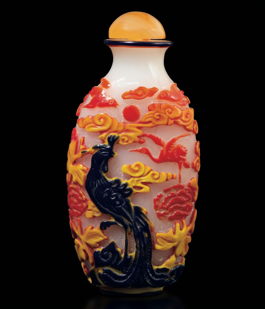 Cameo decor depicting a dragon and phoenixes in blue and red tones. H 8cm