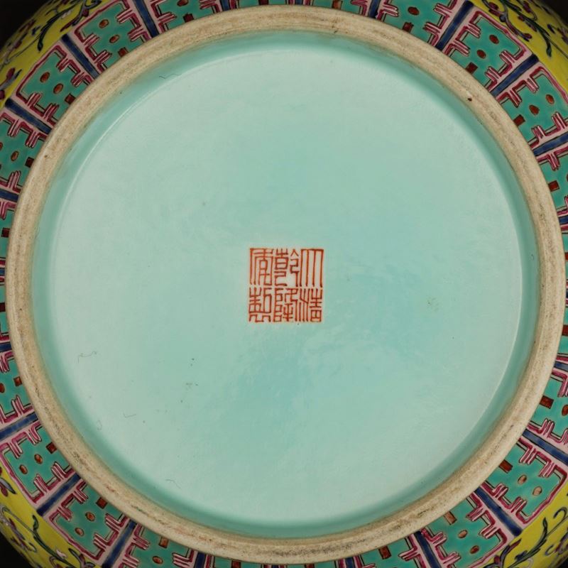 Floral and naturalistic decors within reserves. Apocryphal Qianlong mark. H 33cm