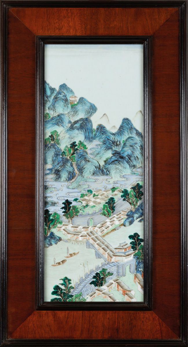 Polychrome enamels depicting a fluvial landscape, from the Qianlong period of the Qing Dynasty (1736-1796). 62x24cm
