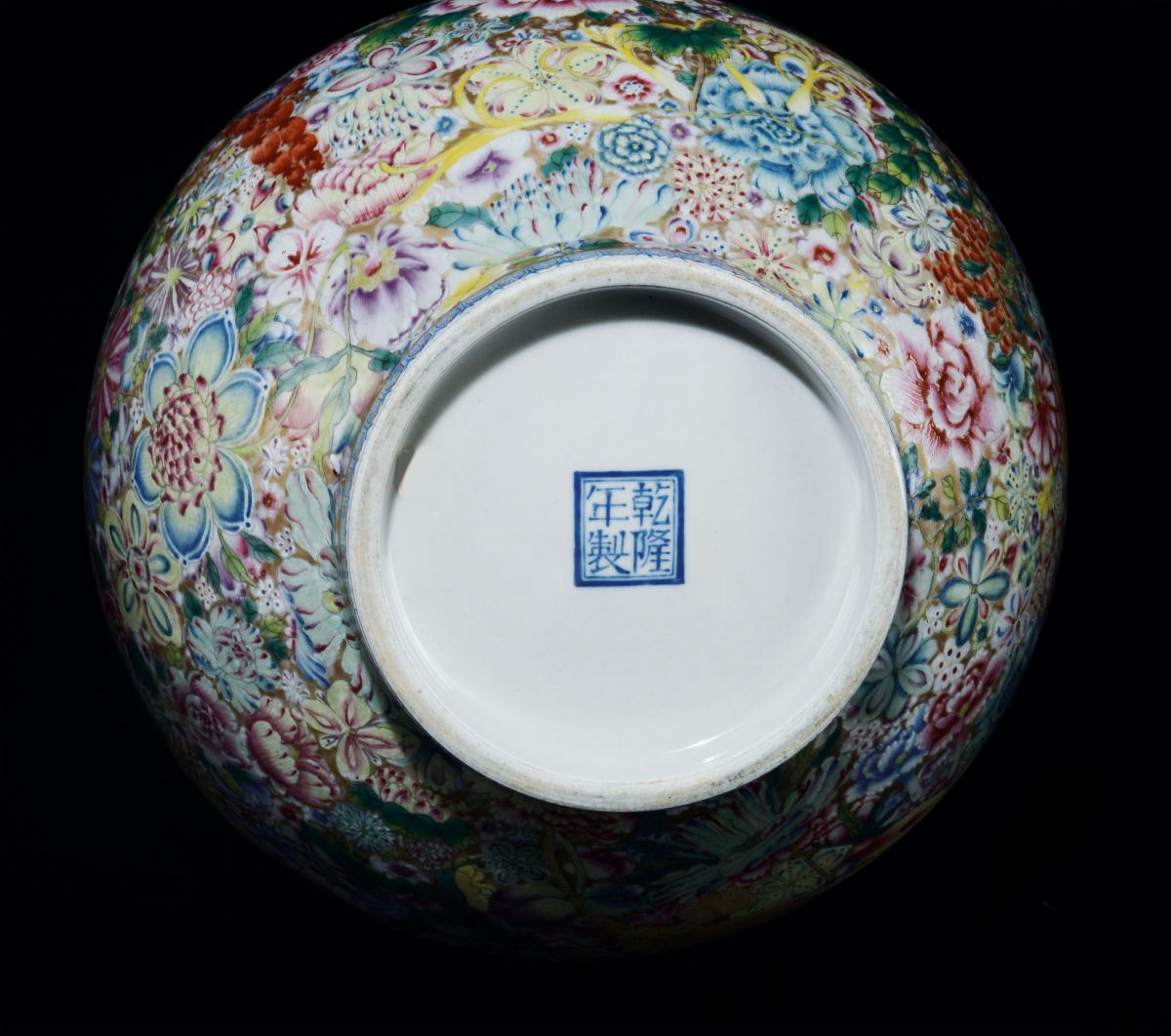 Polychrome enamels. Apocryphal Qianlong mark. H 40.5cm