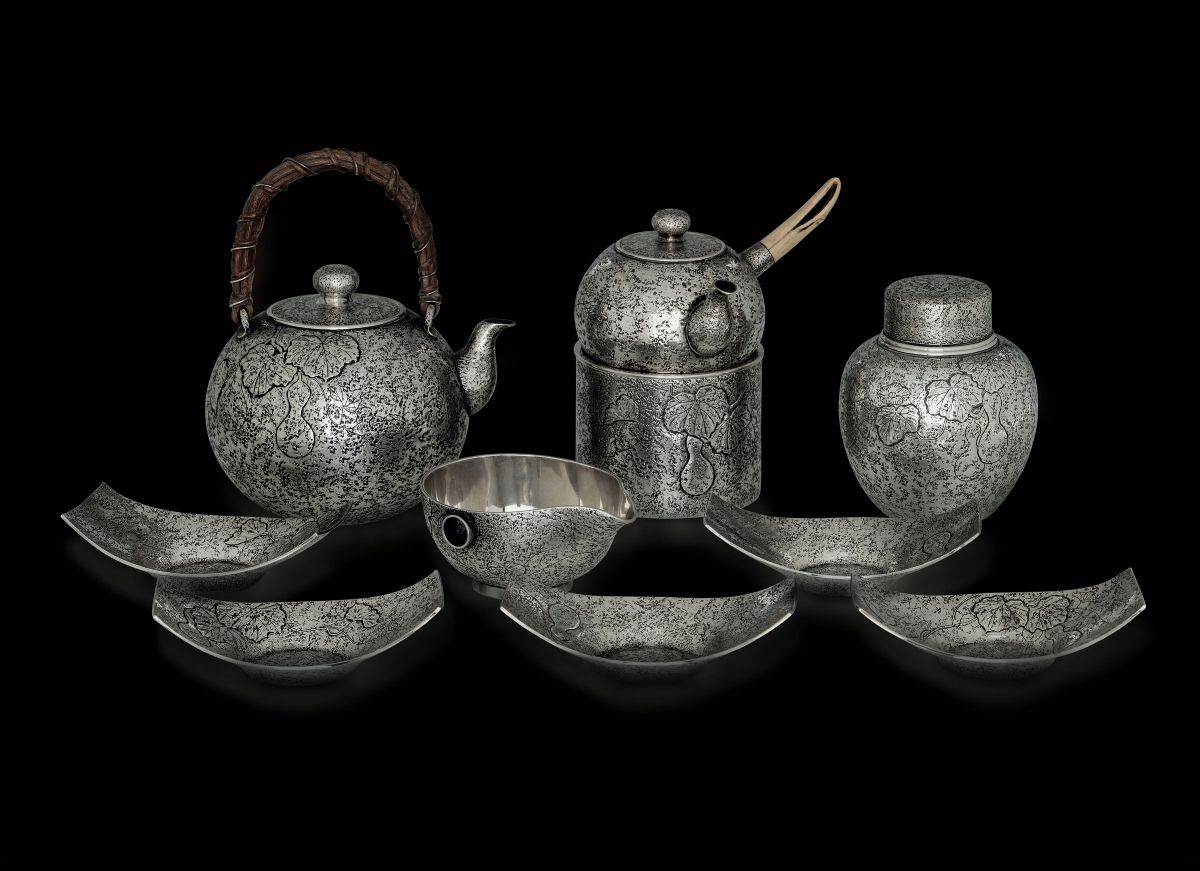 Silver with engraved naturalistic decors. 1890gr; 9cm; 11cm; 7cm; 12cm