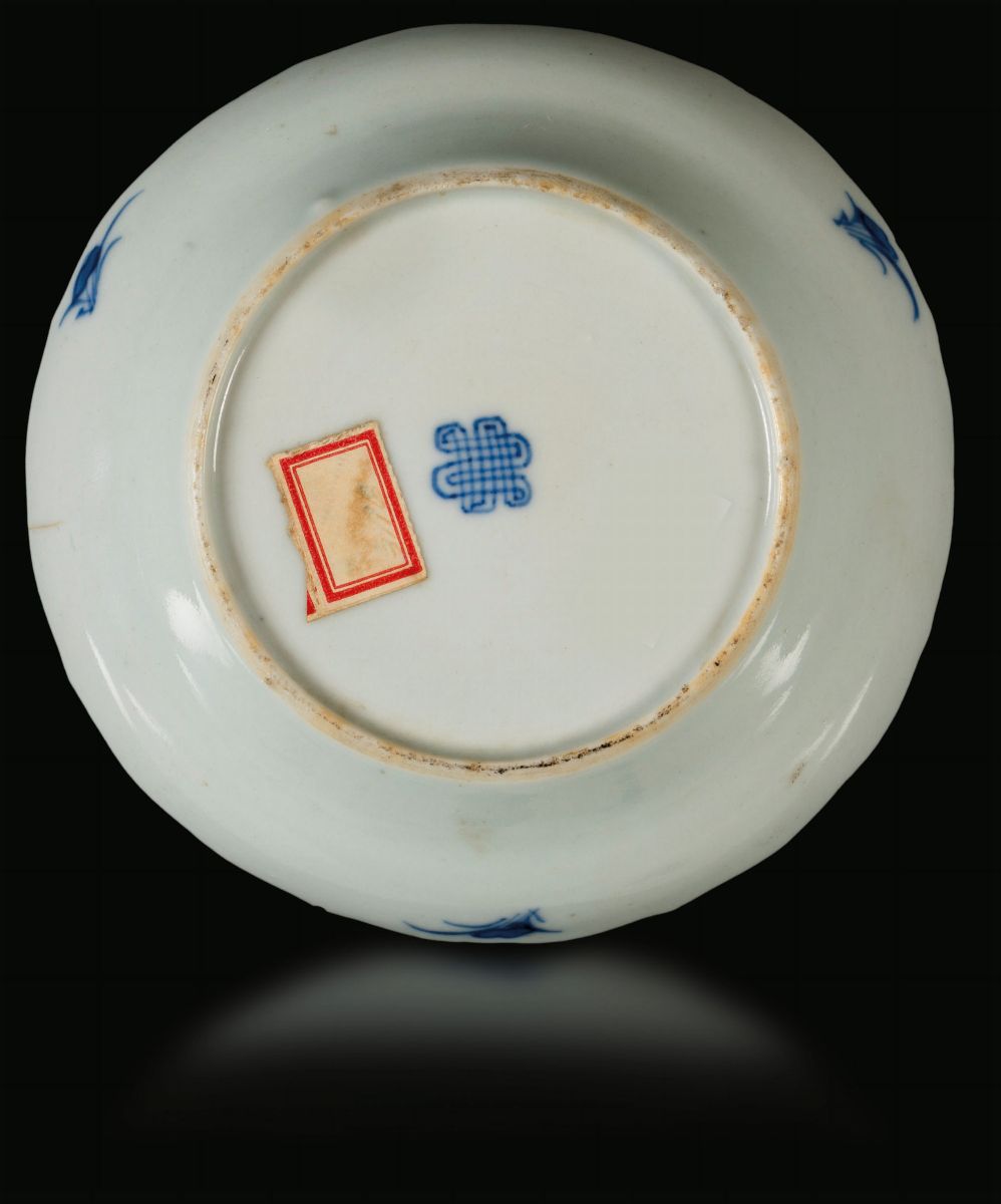 White and blue porcelain with naturalistic scenes, from the Kangxi period of the QIng Dynasty (1662-1722). Diam. from 13cm to 23cm