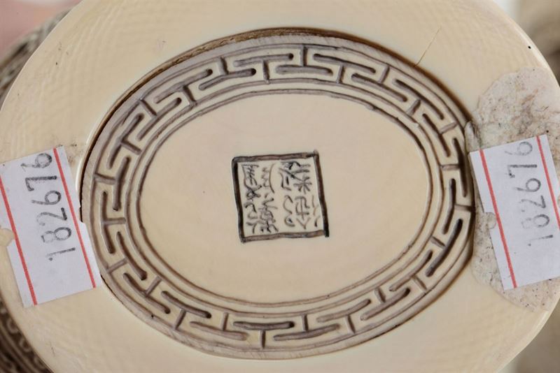 Two lidded vases with ring-shaped handles and perforated decors of dragons among the clouds. H 43cm