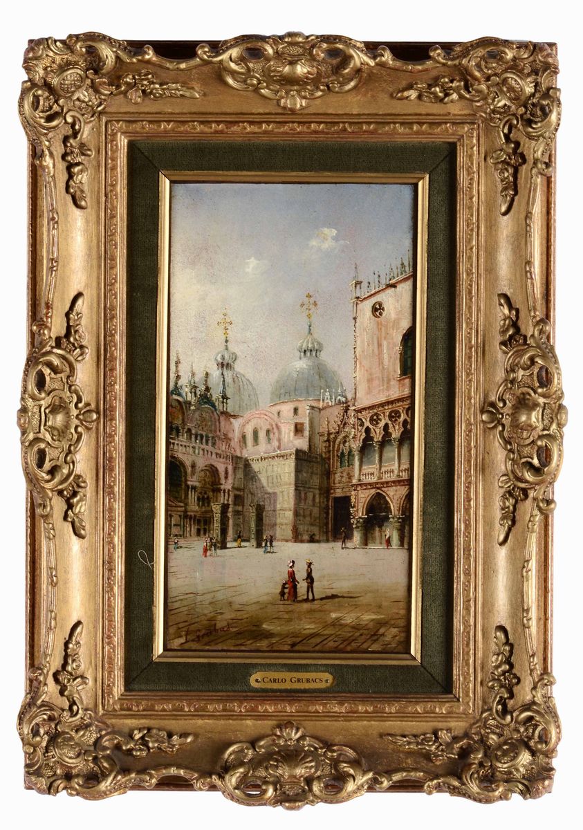 Carlo Grubacs (1801 - 1878), attribuito a Due vedute di Venezia