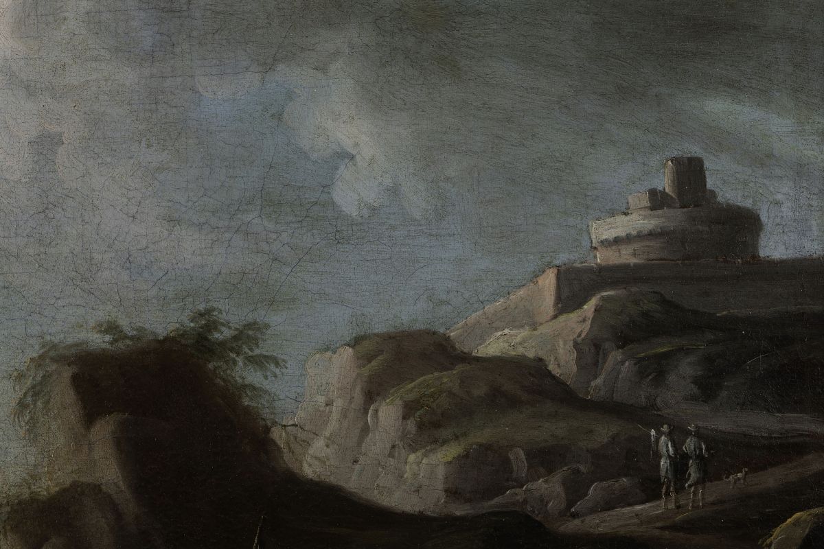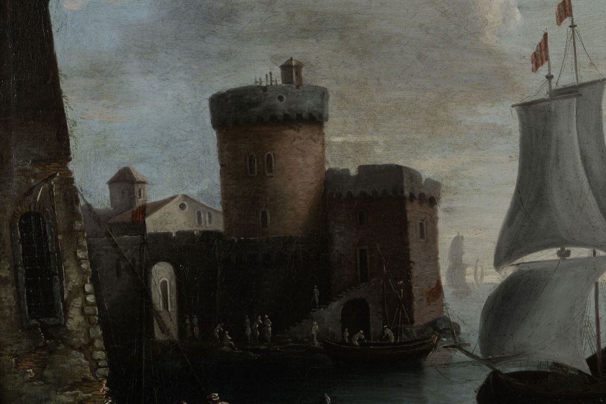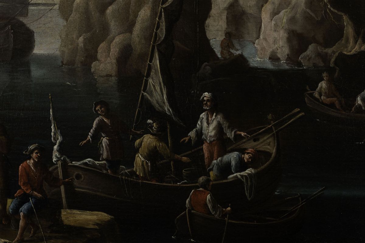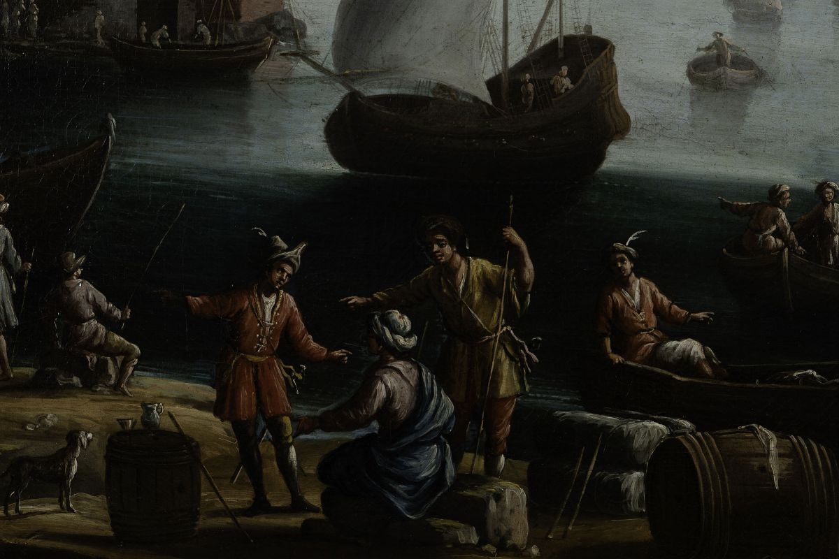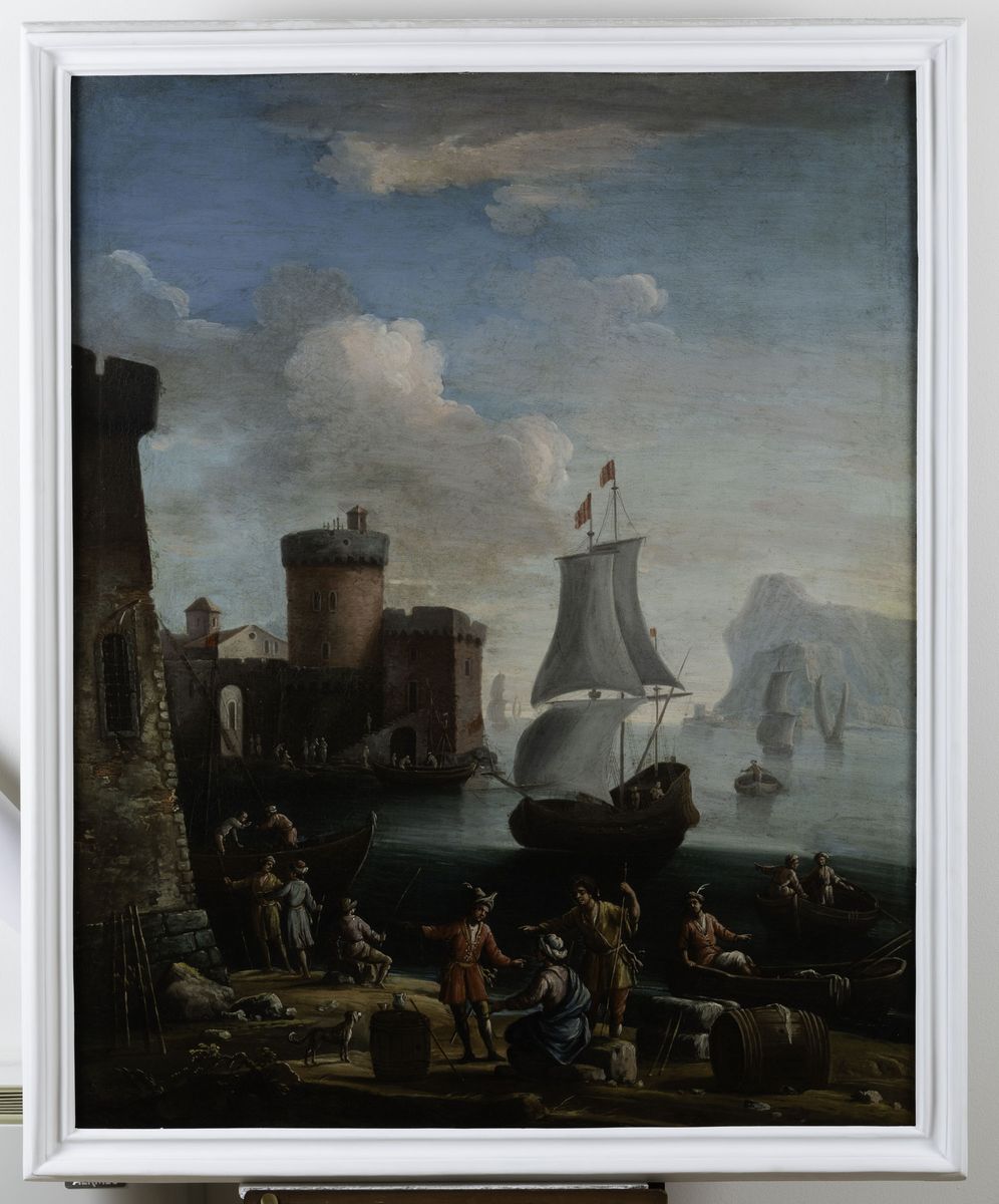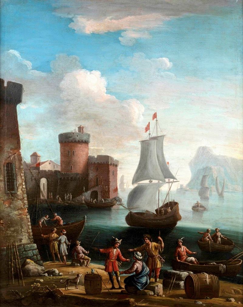 Francesco Antoniani (?-1775) Paesaggi costieri con imbarcazioni