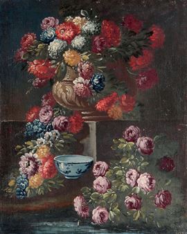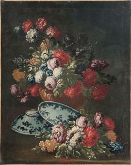 Francesco Lavagna (1684 - 1724) Nature morte con fiori e porcellane