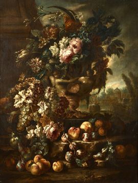 Gasparo Lopez (Napoli 1650 - Firenze 1740) Coppia di nature morte con fiori