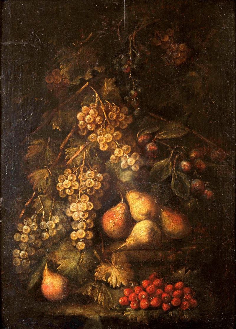 Gilardo Da Lodi (XVII-XVIII secolo) Coppia di nature morte con uva