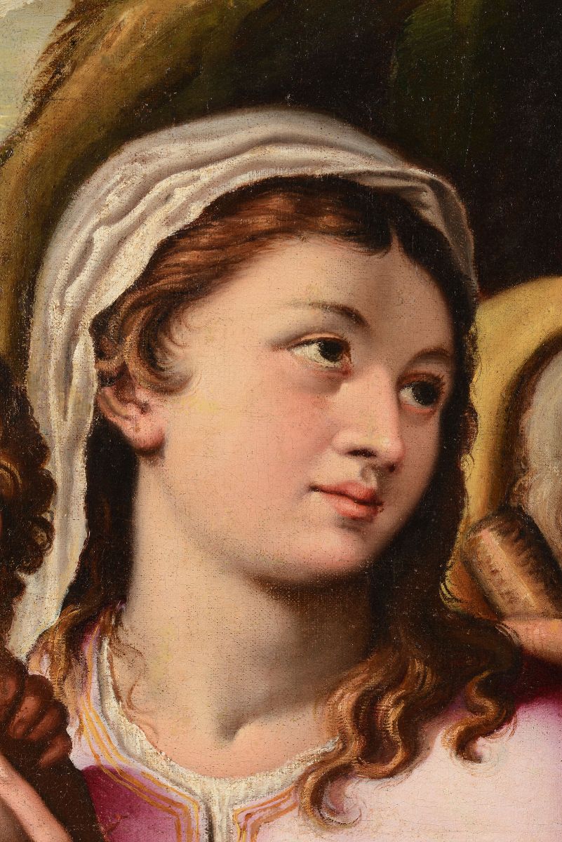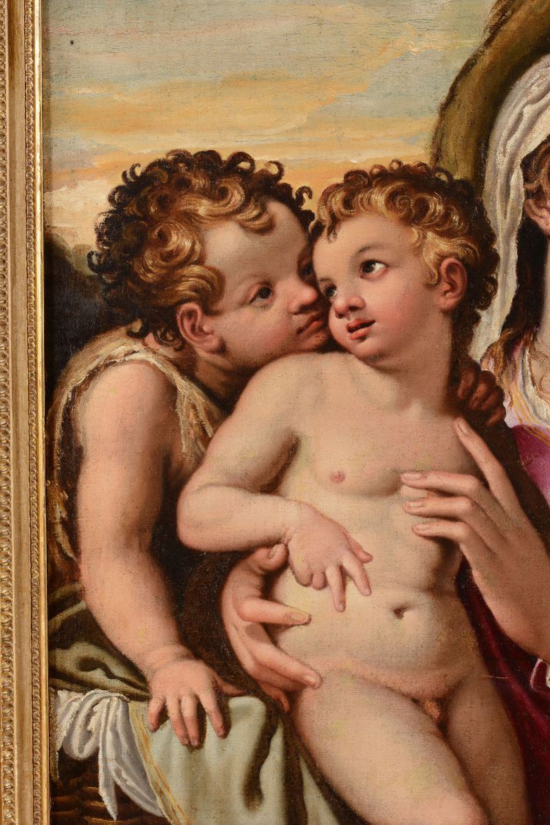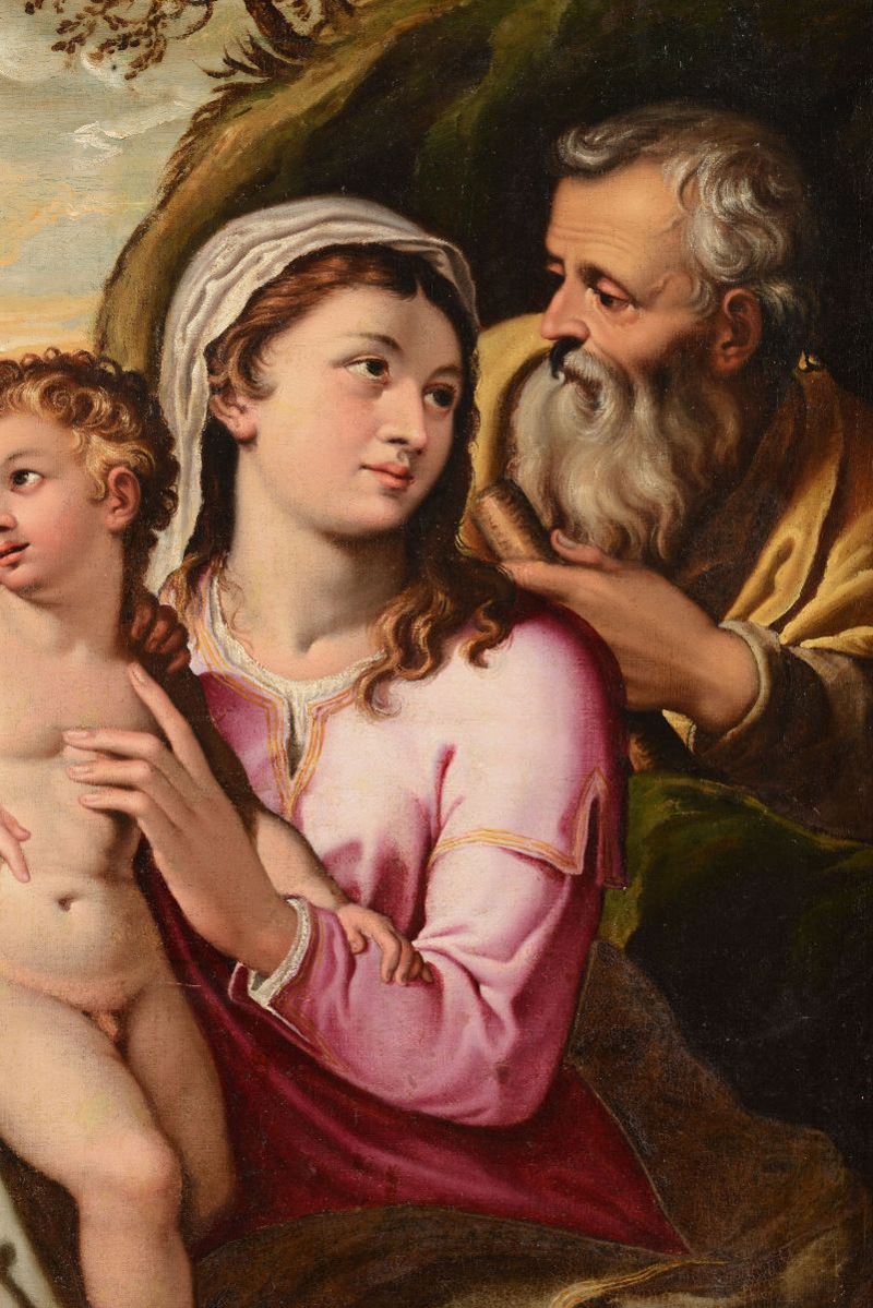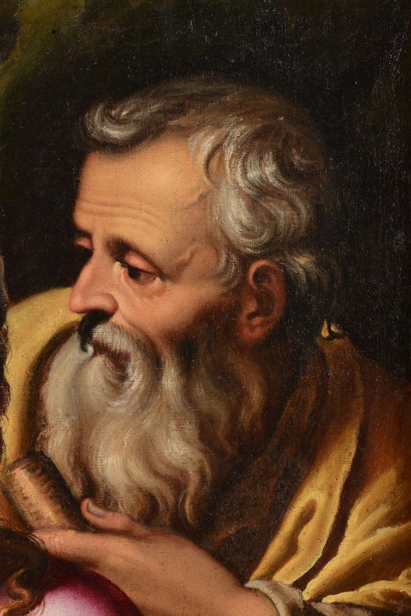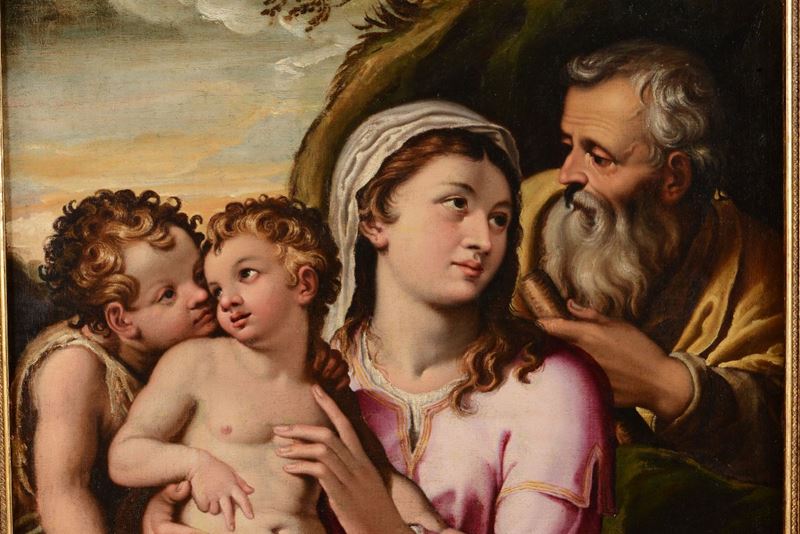 La tela in esame è un autografo sinora inedito di Girolamo Muziano, opera di ottima fattura e tra le più tipiche di questo artista per composizione e stesura pittorica. (...) L'opera appartiene senza dubbio a un periodo giovanile dell'artista, ai suoi esordi romani intorno alla metà degli anni Cinquanta: lo attestano gli stringenti confronti con le prime opere eseguite a Orvieto (...) , nelle quali si ritrova il medesimo linguaggio 'petroso' e monumentale della Sacra Famiglia. (...) La composizione e il tema dell'opera mostrano infine decise somiglianze con una incisione di Nicolas Beatrizet concepita su invenzione di Muziano, forse tratta da un dipinto perduto. Expertise Dott.ssa Patrizia Tosini