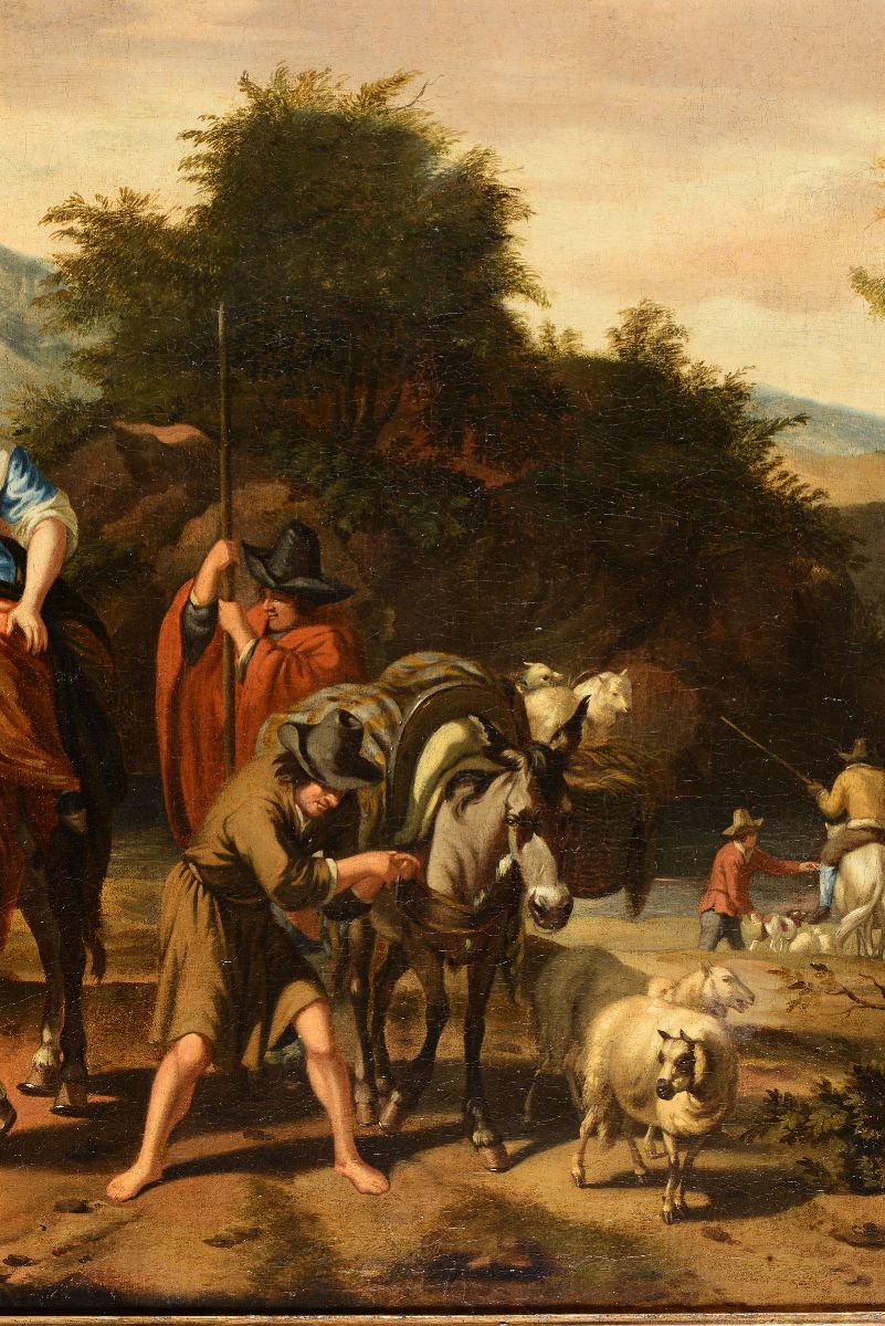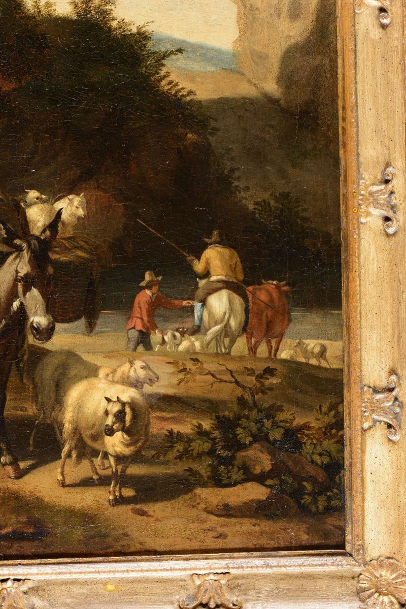Johannes van der Bent (1650-1690) Paesaggio con animali e figure