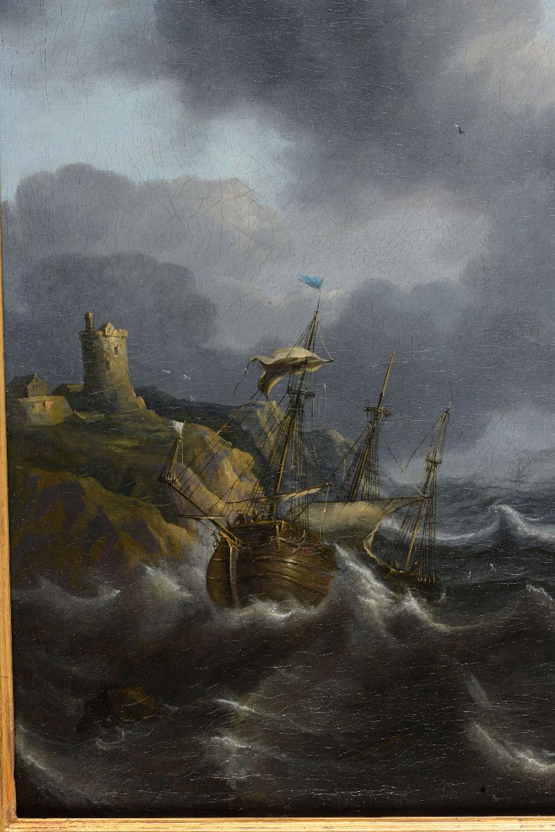 La concezione compositiva e lo stile dell'opera la riconducono alla mano di Pieter Mulier I, di cui è riconoscibile il rifinito tratto pittorico, nonchè il dolce fluttuare del moto ondoso che si apre al centro (...). Expertise della Dott.ssa Raffaella Colace