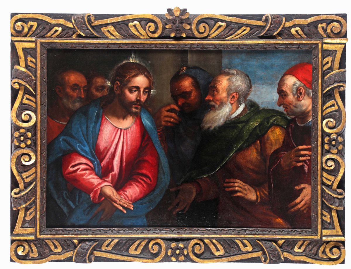 olio su tela entro cornice sansovina coeva, cm 69,2x102,8