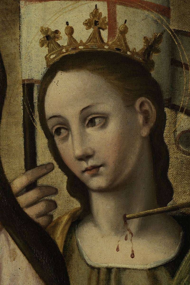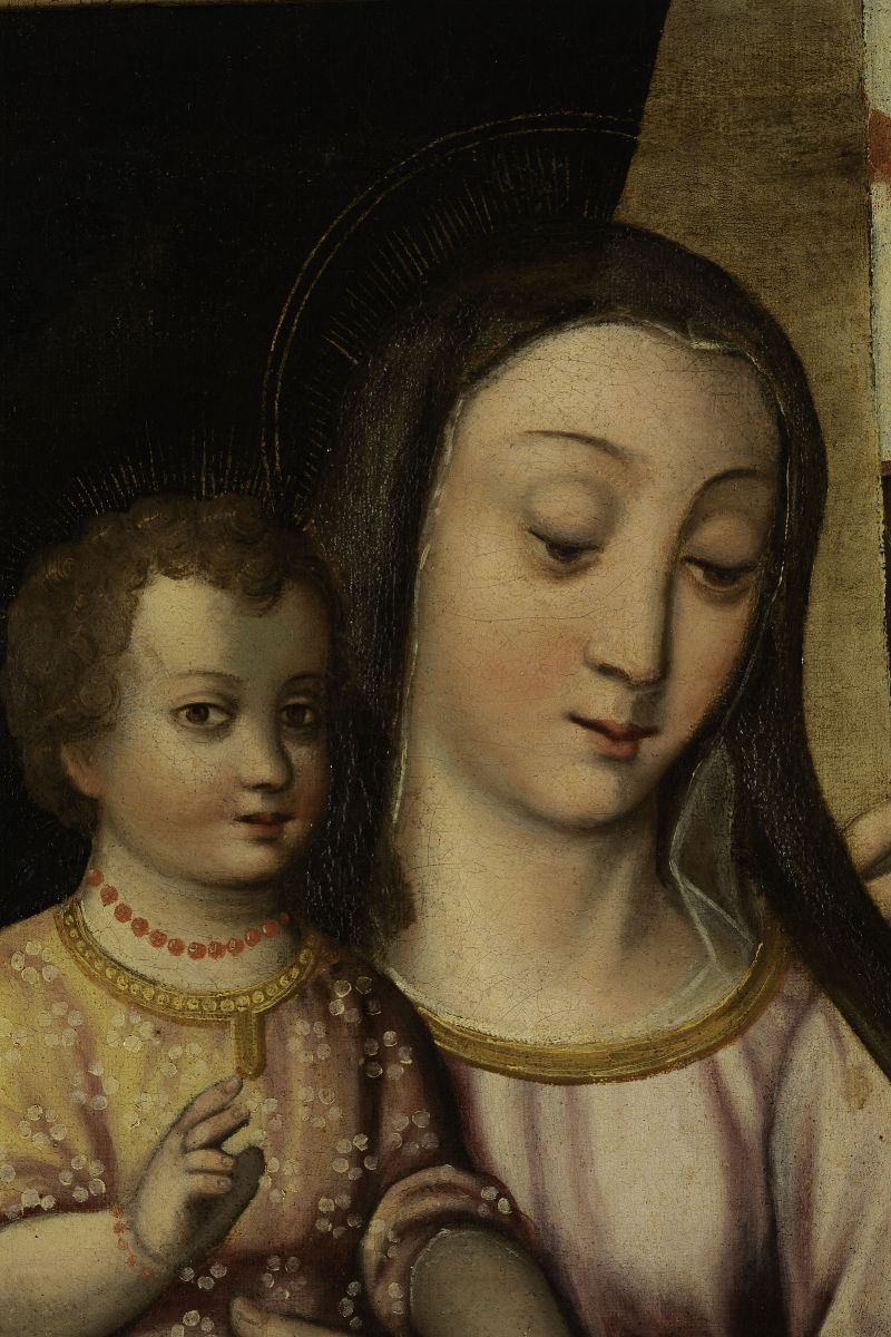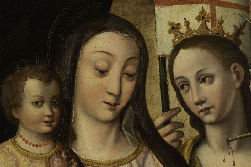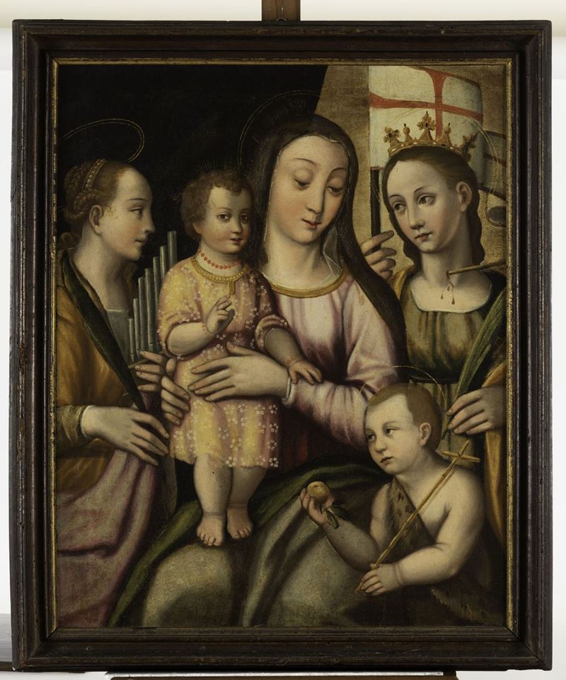 Scuola emiliana della fine del XVI secolo Madonna con Bambino e sante martiri
