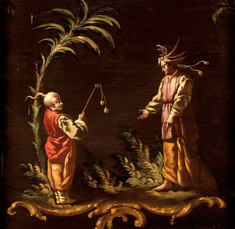 Scuola piemontese del XVIII secolo Coppia di dipinti con cineserie