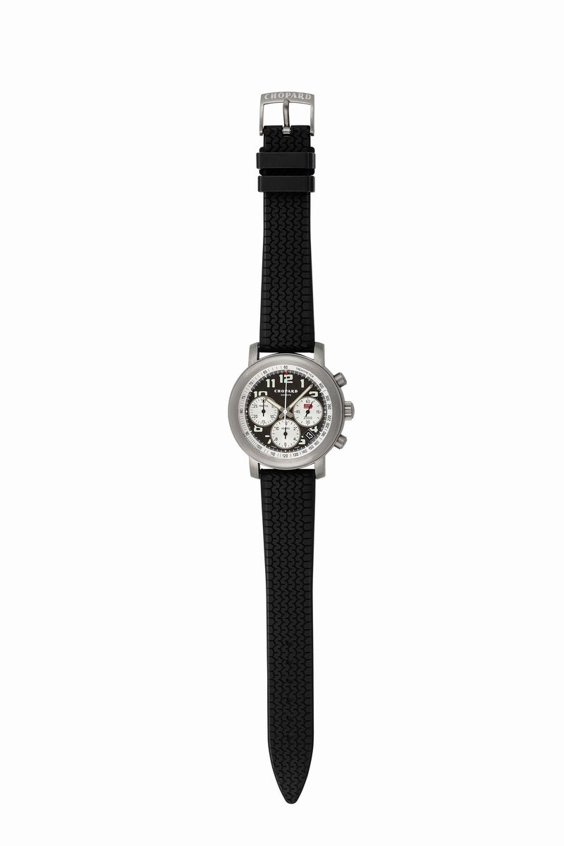 Ref.8407. Fine, water-resistant, self-winding titanium wristwatch with round button chronograph, date and a textured rubber strap with titanium Chopard buckle. Made circa 2000.