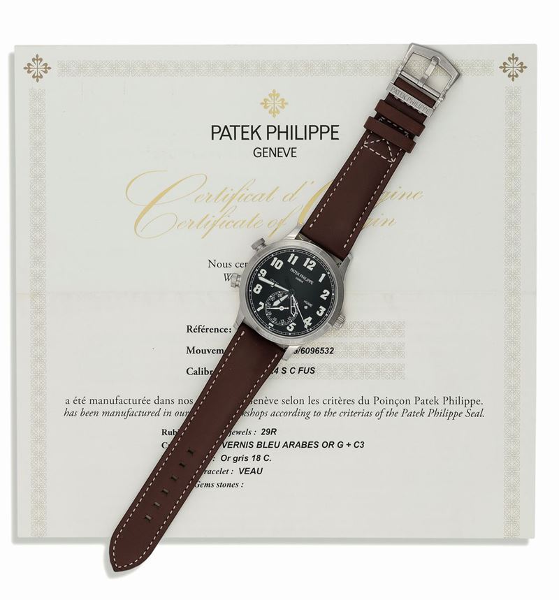 REF. 5524G-001, movement No. 5948929, Case No. 6096532. An extremely fine, self-winding, travel time, 18K white gold wristwatch with original white gold buckle. Accompanied by the original Certificate, booklets, plastic and push pin. Sold in 2016