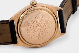 NOTE: The so-called “Big Bubbleback” (or “Ovettone”, as it is known to Italian collectors) is the oversized edition of the iconic “Bubbleback”. Launched in 1933 with ref. 3131, it is distinguished by its dome-shaped – or bubble-shaped – case back, designed to accommodate the rotor, one of the great technical innovations of the time. Most of these pieces were manufacture in smaller sizes, following the fashion of the time. Reference 5030 boasts instead a remarkable 36 mm. diameter, making it a perfect mixture of vintage charm and modern appeal. These early example of Datejust do not feature the name on the dial yet and often have this beautifully aged light brown color to the dial associated with the correct luminous Alpha hands and the correct roulette date wheel.