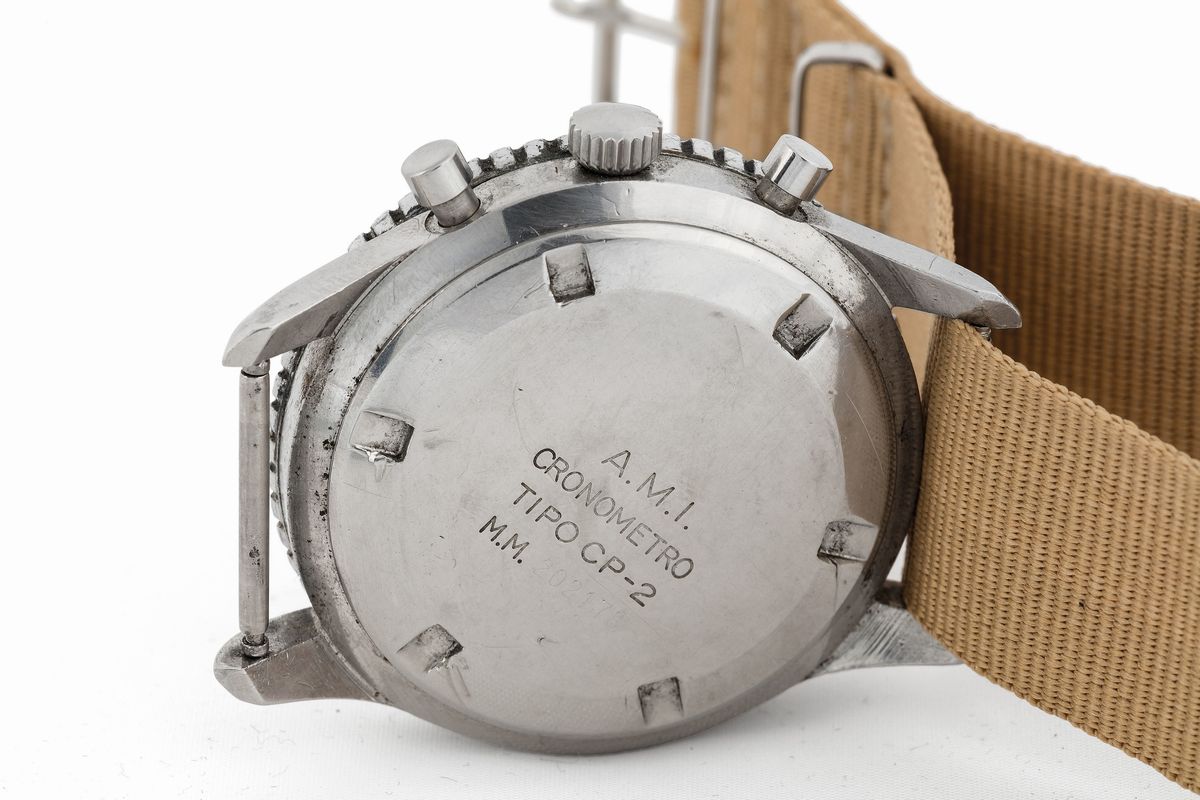 Two models are known to have been made, for a total of 2500 watches. One version was for civilian use, the other one like this piece, a military version features either the engraving “AMI” (Areonautica Militare Italian: Italian Air Force) or “MM” (Marina Militare: Navy) followed by the inventory number.