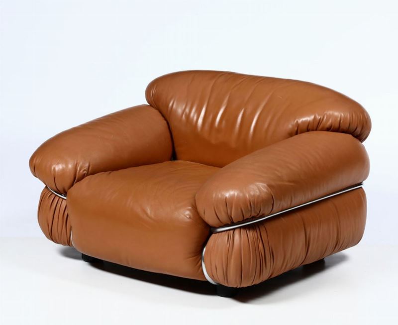 Salotto composto da un grande divano e due poltrone mod. 595 Sesann.