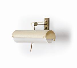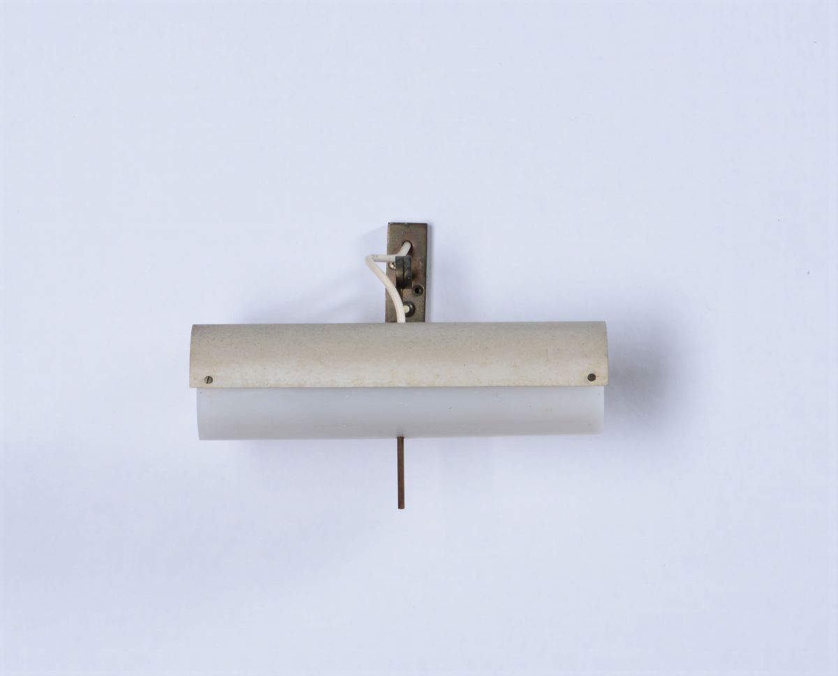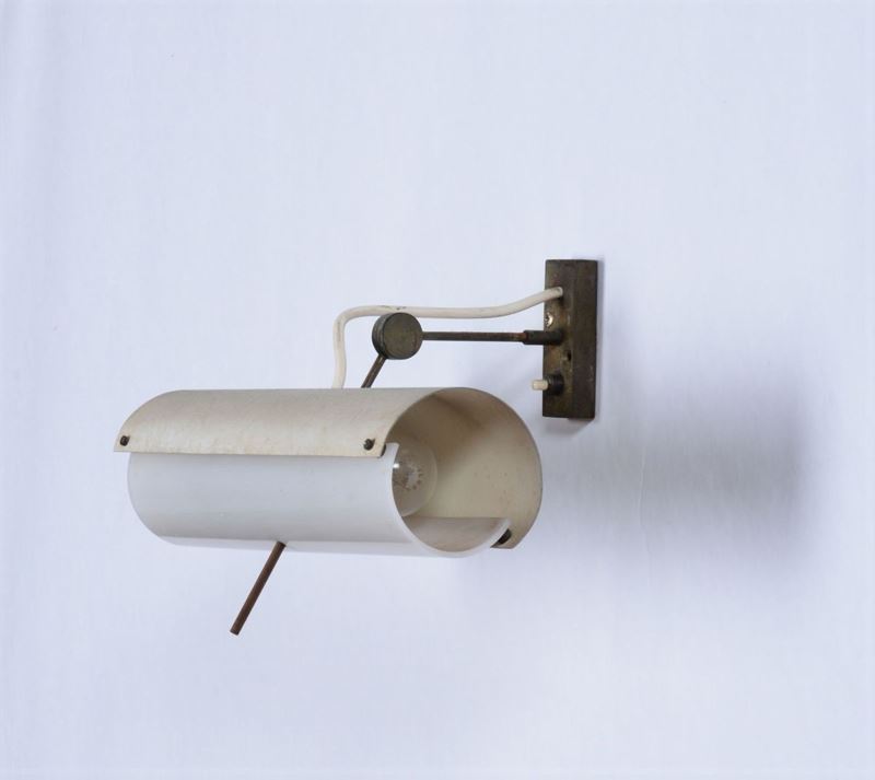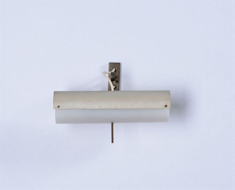 Lampada da parete con struttura in alluminio laccato ed ottone lucido. Diffusore in perspex.