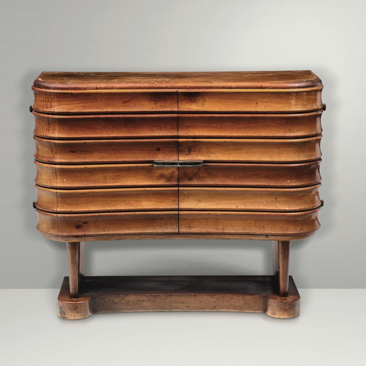Mobile bar con struttura in legno e dettagli in metallo. Maniglie in cristallo molato di forte spessore.