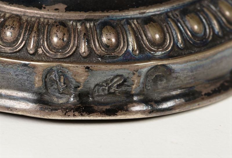 Molten, embossed and chiselled silver. Worn goldsmith's mark and stamps for the city's Guarantee Office