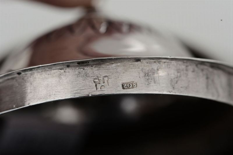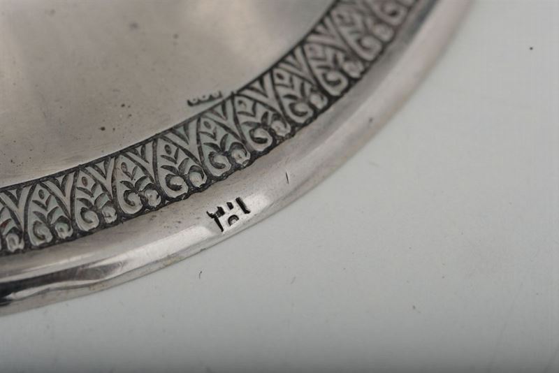 An important Neoclassical coffee pot in molten, embossed and chiselled silver with an ebonised wood handle, designed by Carlo Barabino. Genoa, Torretta mark for the year 1802