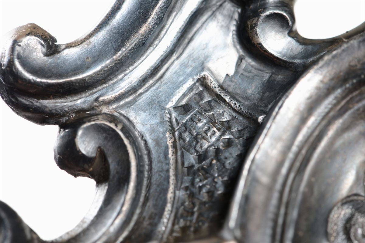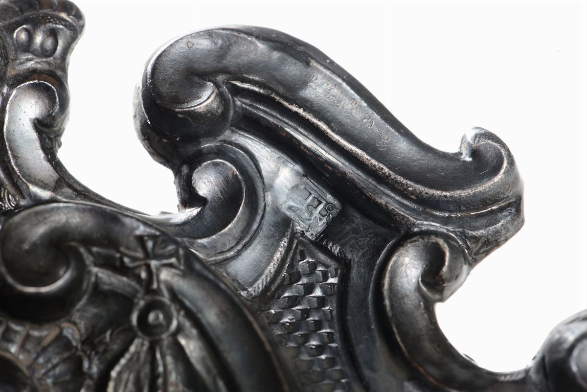 Molten, embossed and chiselled silver, glass basin. Torretta mark for the year 1748 and mark for the city of Barcelona
