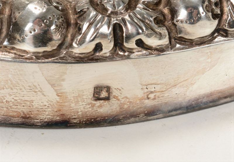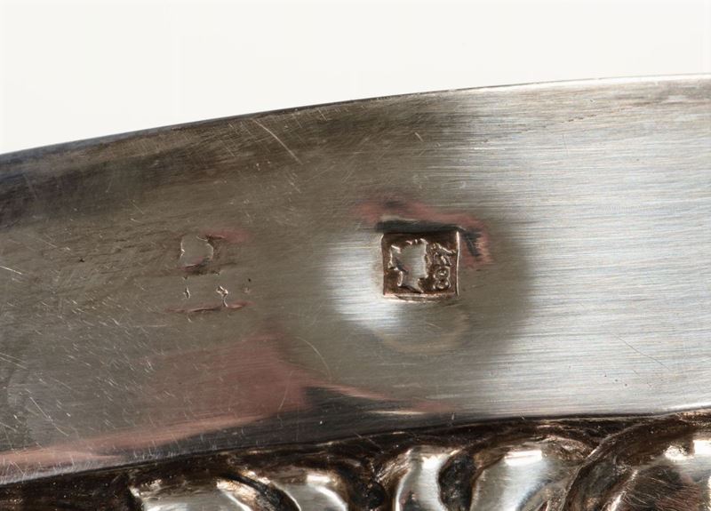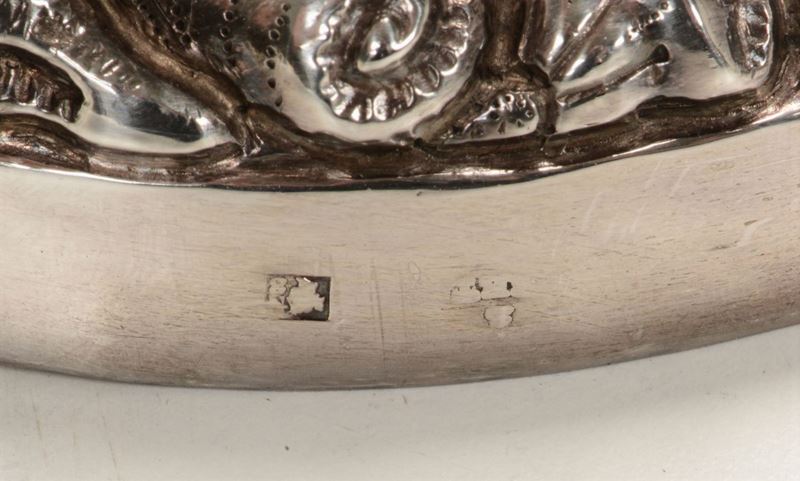 Molten, embossed and chiselled silver. Naples, second quarter of the 19th century, assayer's stamp for Paolo de Blasio (in use between 1932 and 1935) and worn goldsmith's mark, likely attributable to Salvatore Spreta