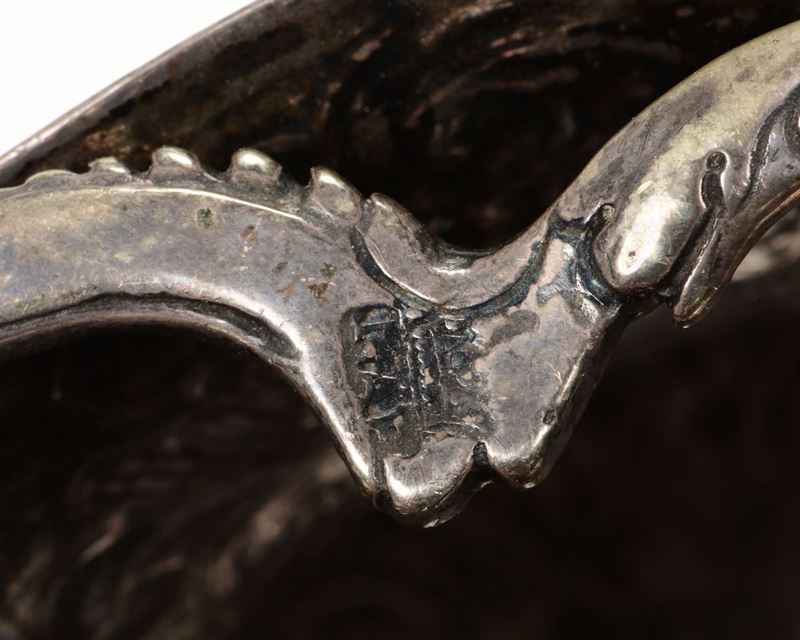 Molten, embossed and chiselled silver. Naples, first half of the 17th century, city's guarantee stamp