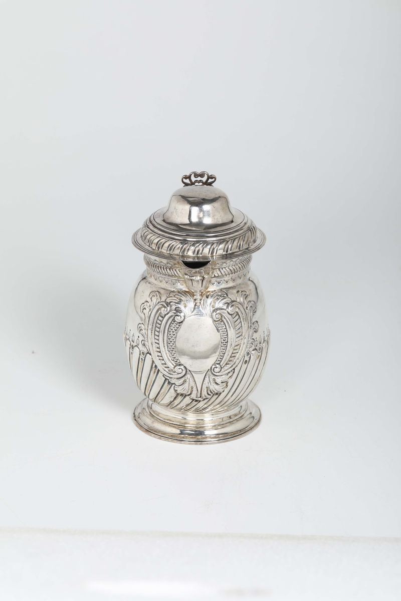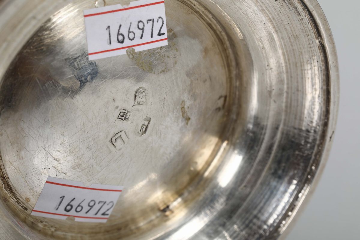 Molten, embossed and chiselled sterling silver. Unidentified silversmith T.T