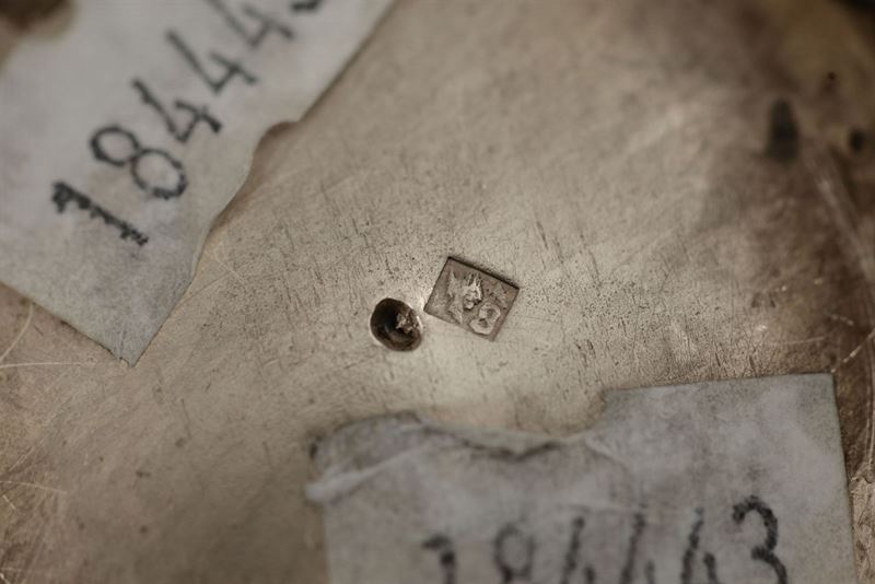 Molten, embossed and chiselled silver. Second quarter of the 19th century. City's guarantee mark (Parthenopean profile with the letter N and the number 8)