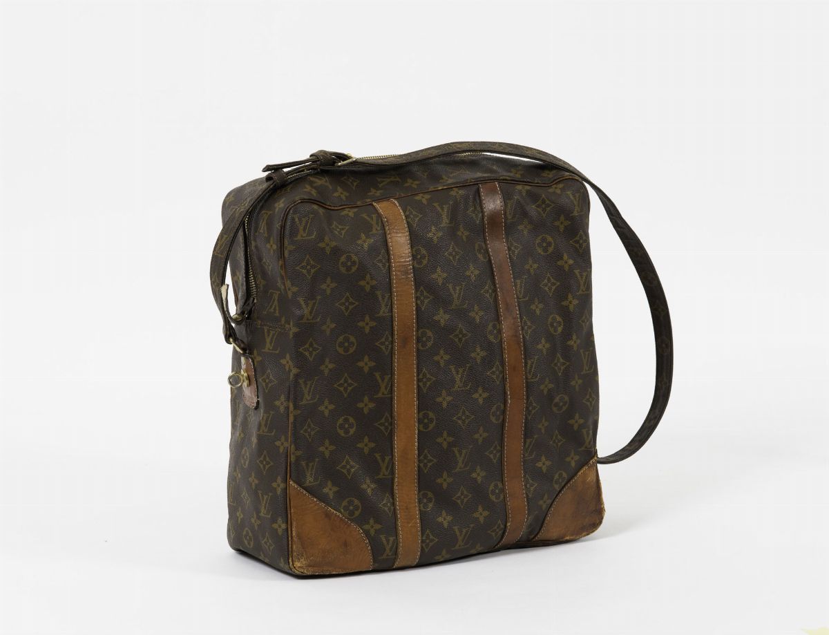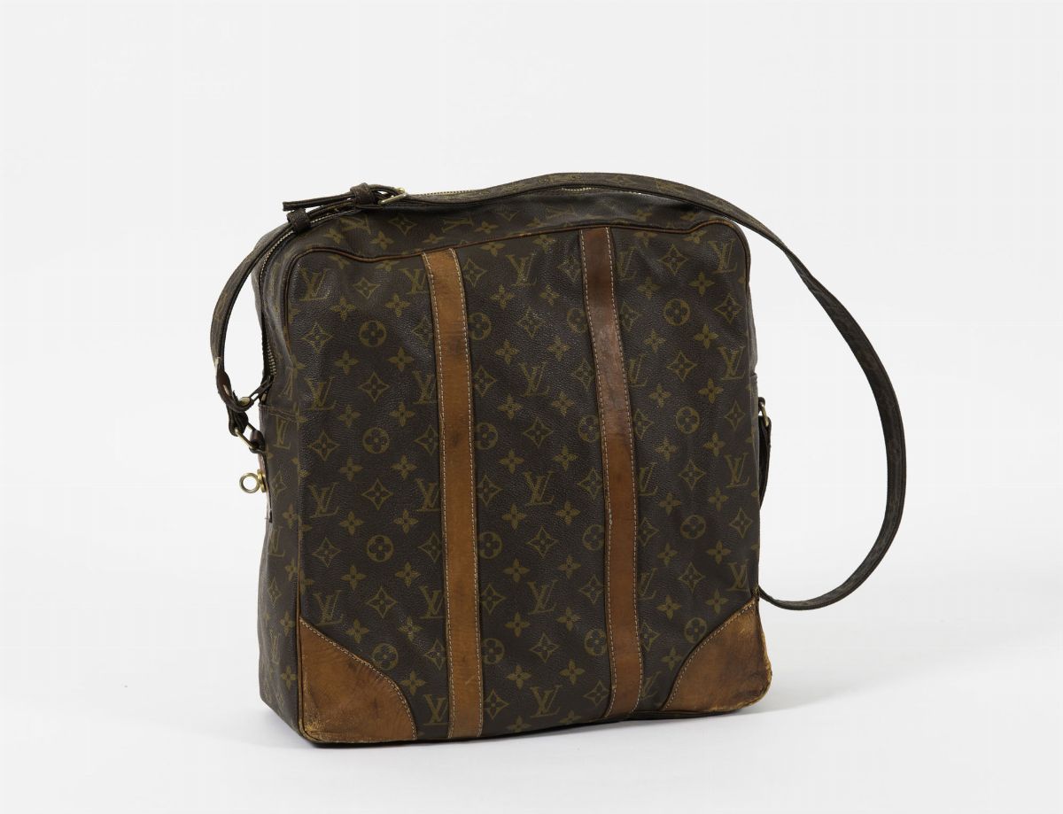 in pelle e canvas monogram,senza numerazione ma coeva all'epoca,cm 37x37,difetti evidenti di usura