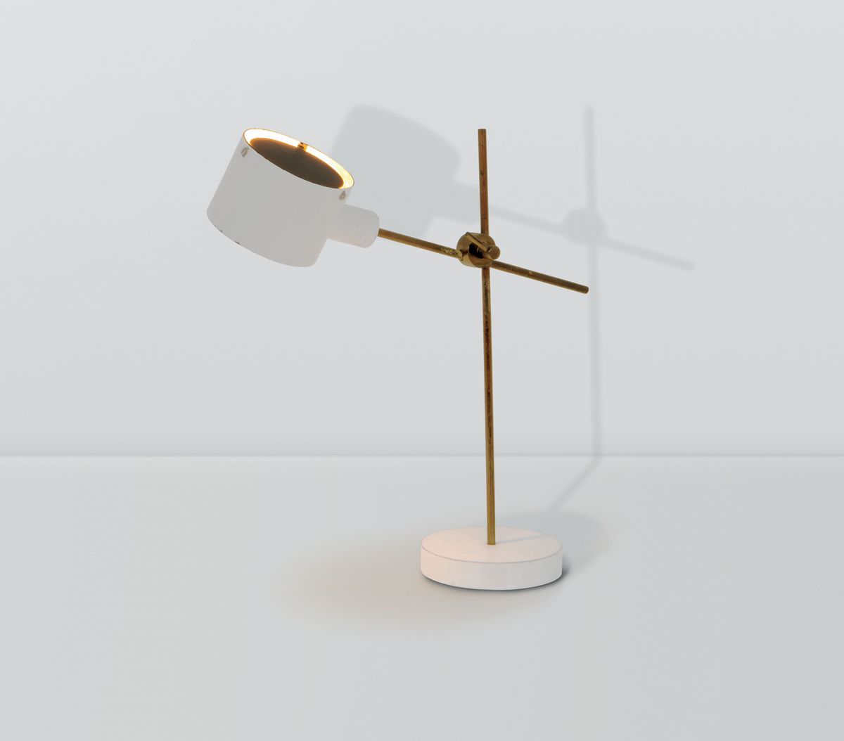 Lampada da tavolo regolabile mod. 259 con struttura in ottone e metallo laccato.